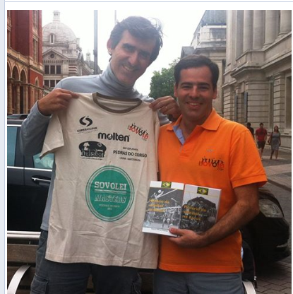 Foto: Beto Pimentel (filho do autor) e Luis Melo, gestor do sovolei, em Londres.