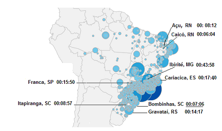 Uma agradável surpresa que não podemos deixar de registrar refere-se à descoberta e súbito interesse de internautas em algumas cidades em destaque no mapa, o que para nós revela o interesse por um Aprender a Ensinar. Lamentavelmente o Google Analytics não insere o título do artigo pelo qual o consulente realizou a abordagem. Ou pelo menos ainda não aprendemos a identificá-lo. Mas mesmo assim estamos satisfeitos por prender a atenção de pessoas que demonstram curiosidade e, certamente, nos dão crédito.