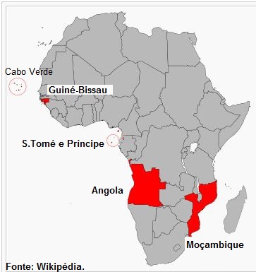 África PALOP: Cabo Verde, Guiné Bissau, S. Tomé e Príncipe, Angola, Moçambique.