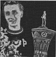 Aleksandra Tchoudina recebe o troféu de campeã mundial em 1956.